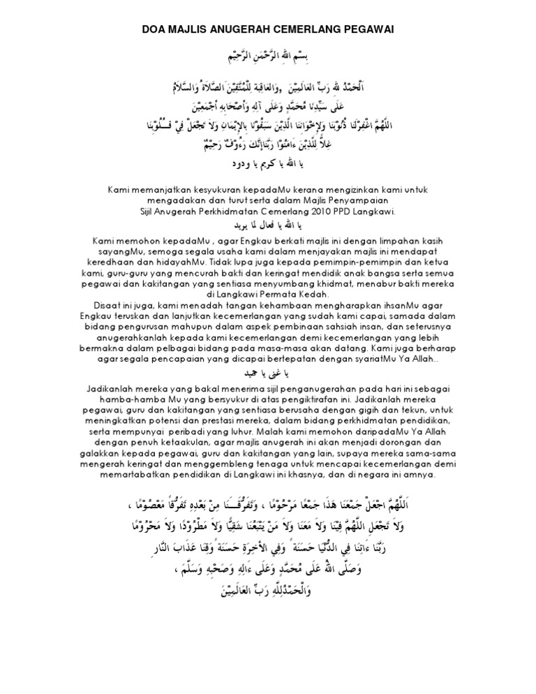 Doa Anugerah Perkhidmatan Cemerlang Pdf